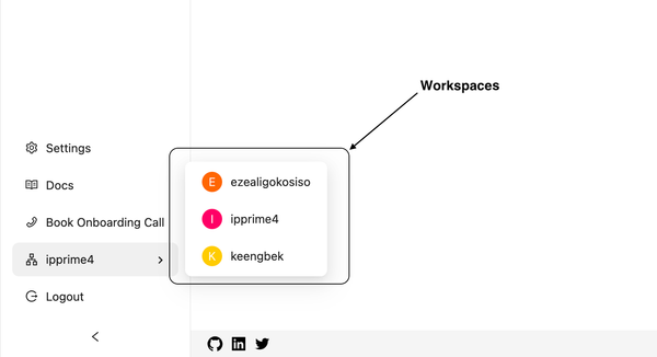 If you're a member of multiple workspaces, you can switch between them by clicking the workspace name in the lower left corner of the screen. Remember, all applications in a workspace are shared among all its members.